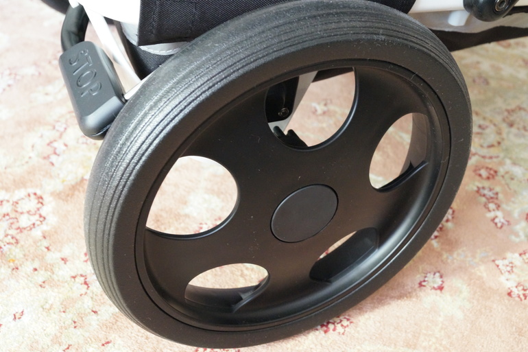 Первое, что было важно для меня, это вес коляски. Хоть я и откатала полгода не очень-то невесомую Инглезину, но ребенок растет, впереди зима. У меня небольшой вес и рост, поэтому с тяжелой коляской просто физически не справлюсь. Коляс выбирала до 12 кг, Бритакс как раз столько и весит. Также мне хотелось попробовать коляску с EVA колесами, их не нужно подкачивать, они мягкие и не травмируются камнями. Первое впечатление хорошее,посмотрим, как поедут на улице.