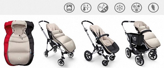 Комфортный функциональный конверт cохраняет тепло и обеспечивает защиту в любое время года. Подходит для всех моделей колясок Bugaboo, включая bee.