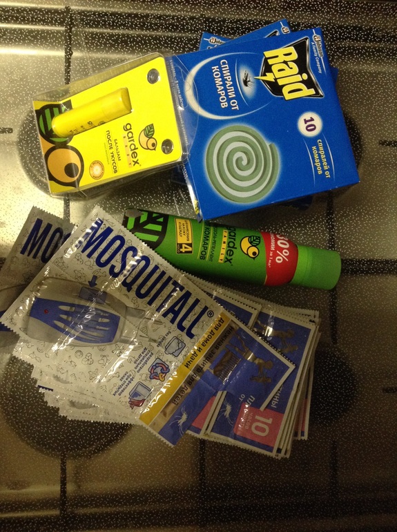 Купила большую свечку от комаров для использования на улице за 39р, детский спрей garden 39р. ну и пластинки и жидкий москитол!