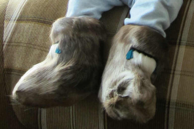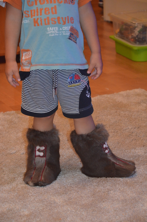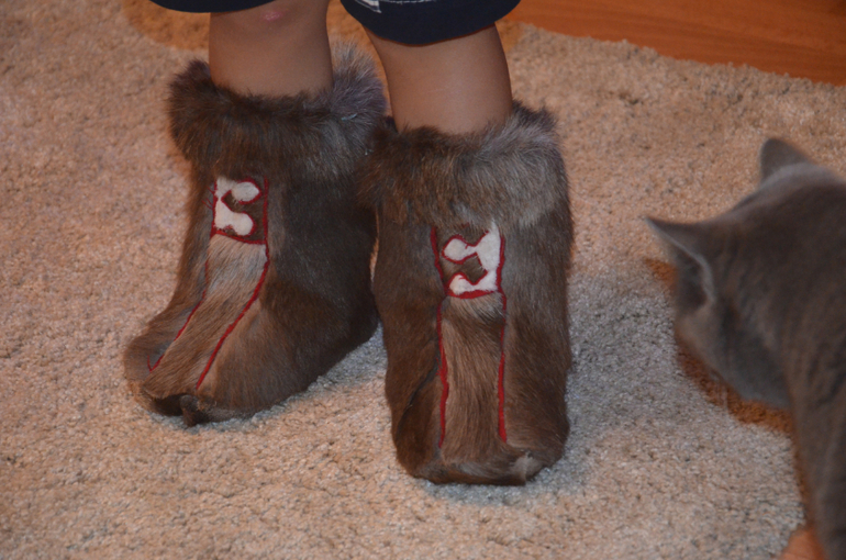 Смотрите, что купила сыну на зиму-КИСЫ оленьи, ручной работы, настоящие, хантыйские (зимы у нас холодные, снег чистый, соль и всякую бяку не сыпят, поэтому без подошвы-у самой кисы с подошвой-кому интересно, сфоткаю и свои)