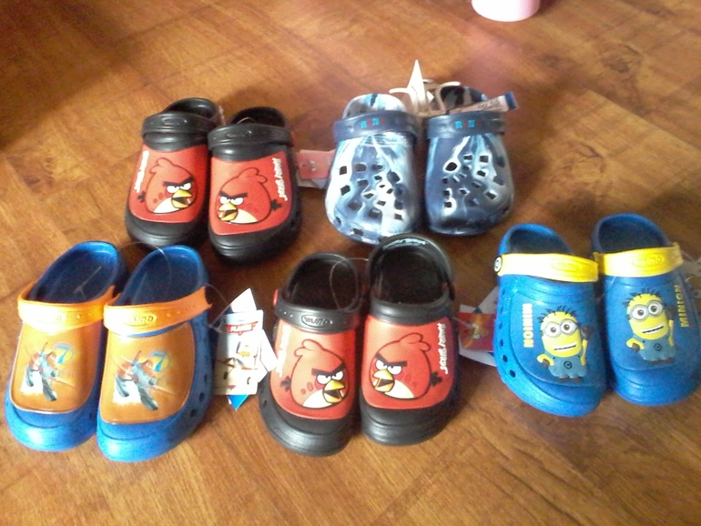 Не буду каждую пару фотографировать,т.к брала некоторые просто разного размера.Коричневые полностью кожа.Невесомые.Взяла крестнику 299р.Тапочки синие смотрятся очень мило и нарядно 299р.Розовые тапочки 199р.