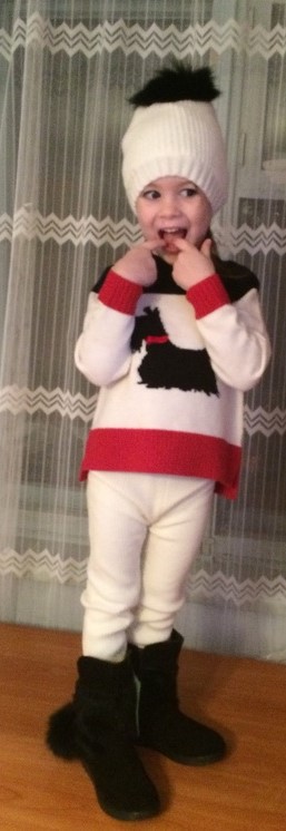Свитер 104 размер, хотела 110, но большой, хотя сейчас все одежду беру 110. Мне кажется размер в размер.