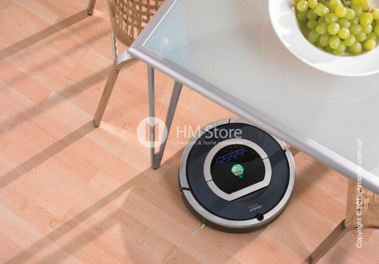 Пылесос iRobot Roomba 785 предназначен для сухой уроки помещения. Он убирает пыль, пух, волосы и шерсть домашних животных со всех типов напольных покрытий. На одном подзаряде работает до 3х часов и убирает 120 кв. м. Благодаря специальным щетка досадит мусор в углах, вдоль стен и вокруг мебели. Специальны бампер делает прикосновение к предметам интерьера более мягким. В Айроботе встроенныеы специальные датчики, которые определяют чистая поверхность или нет. Если еще нет, то пылесос будет убирать до тех пора датчик не покажет, что чисто.