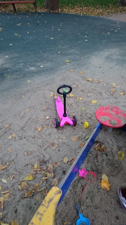 Прошлая зима в Москве была настолько непонятная по погоде, что санки я достать не успела, а вот самокат всю зиму не убирали, частенько катались