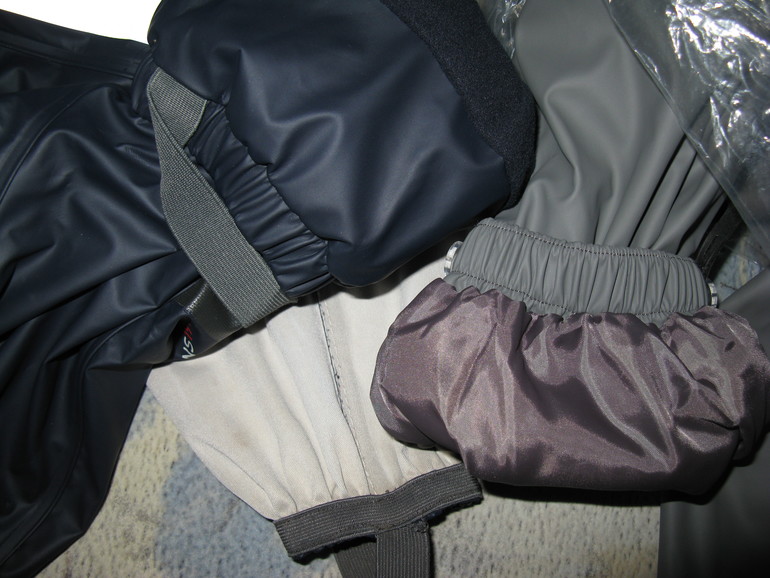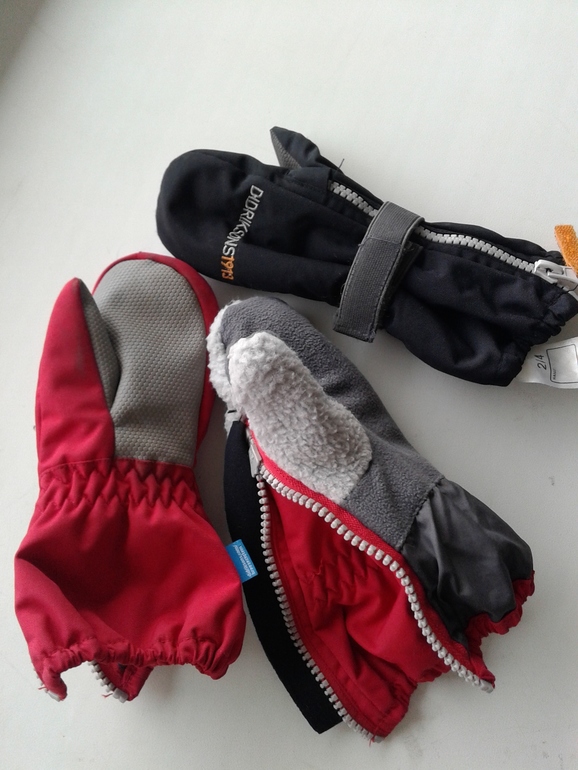 Для луж есть резиновые варежки. Это, конечно, большой вопрос к дидриксону. Сверху простые резиновые варежки р.6, которые ношу я. А снизу самые маленькие детские варежки с флисовой подкладкой. Ничего себе размерчик, да?