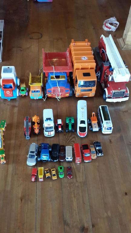 В вверхнем ряду слева скорая помощь, у нее открывается задняч дверка, есть носилки и 2 человечка, не могу вспомнить фирму ( . Есть еще газель металлическая со звуком и светом. Любимы были обе. Пожарная машина фирмы bruder, туда даже воду залить можно и брызгать. С пожарной и мусоровозом дочка до сих пор играет, ей 4 скоро