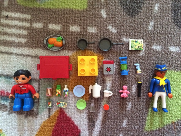 И всякие мелочи рядом с людьми взрослыми и кубиком лего дупло