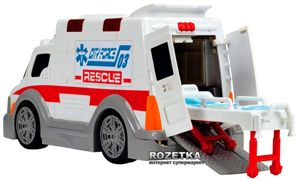 У нас второй вариант - вот такая скорая, пожарная вроде такая. Недорогие, мелкий играет с удовольствием. У скорой открываются все двери (и задние), правда, каталок никаких нет. У пожарной тоже открываются двери, выдвигается лестница (пластиковая и хлипкая, но за почти год игры не сломалась). У пожарной озвучка еще есть.