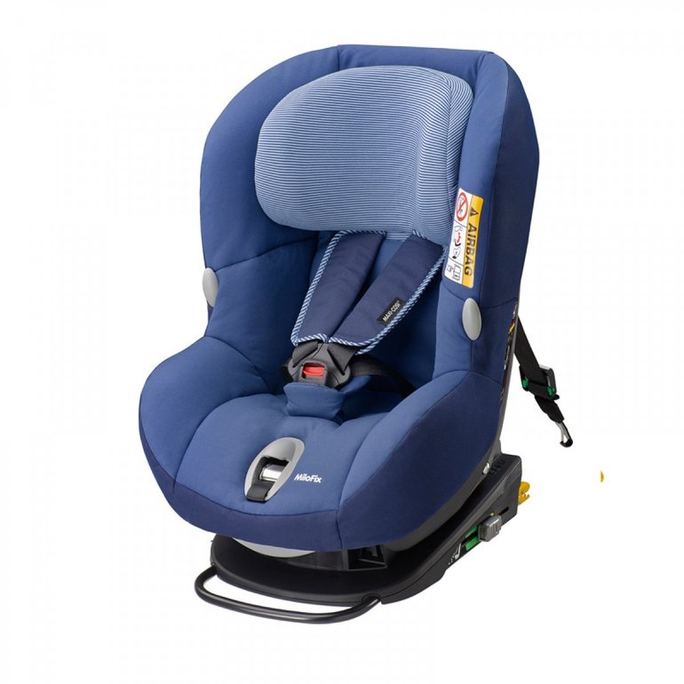 Maxi-Cosi Milofix имеет дополнительную точку крепления, помимо изофикс, якорный ремень. Ребенок пристегивается 5-ти точечными ремнями против хода движения и по ходу, после 9 мес или года, кресло поворачивается по ходу движения. Видео тут