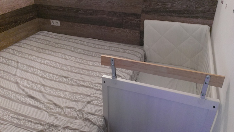 Эти кроватки имеют такую функцию, автостенка. Но у нас однушка, диван и придвинуть к себе кровпть проблема....наверное. это проход придется загородить))) и летать по комнате)))