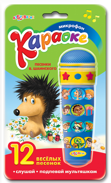 У моей такой только новогодний) И телефон азбуквариковский *называется мультиплейер улыбка*.Песенки коротки, один купле+припев. Дочь у меня просто очень петь любит, так что нам и микрофон и телефон очень хорошо пошли)