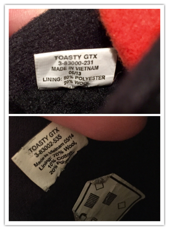 Мне продавец в "весело шагать" говорила, что раньше все делалось из искусственного материала, с малым добавлением шерсти, а новые модели (видимо с 2014 г) делают наоборот много шерсти и чуть синтетики.