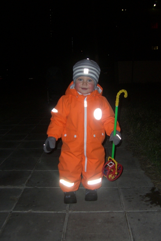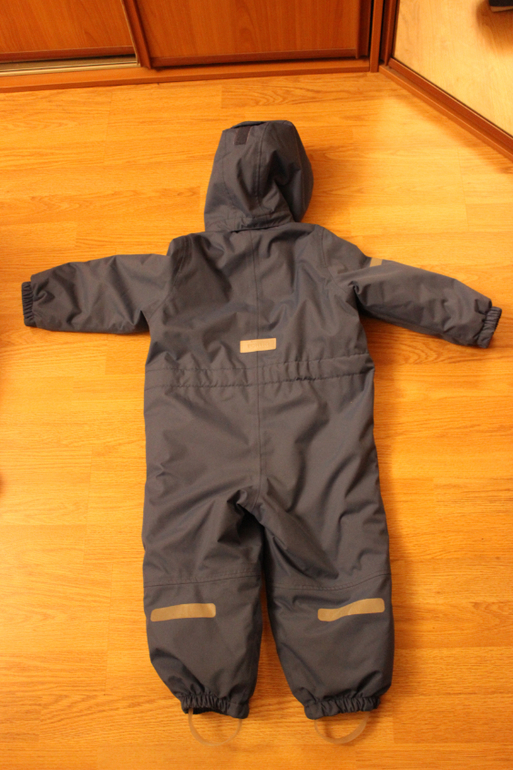 На комбезе много светоотражателей, на ножках удобные регулируемые силиконовые штрипки. Капюшон тоже регулируемый и съемный. На внутренней стороне пояса имеется резиночка, которая позволяет регулировать комбинезон по фигуре малыша. Молния, также для нас оказалась очень удобной - Костя периодически может попроситься по нужде на улице, и такая молния позволяет сделать это без проблем.![]()