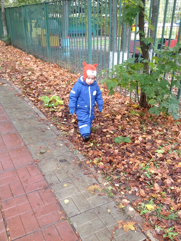 блин, а у моего активность не спадает, вчера вот с мальчиком соседским играли в догоняли, с горок на пузе съезналки, по площадке на коленях ползалки , и т.д. зимой проще - хоть снежок почище, а осень - это жуть.