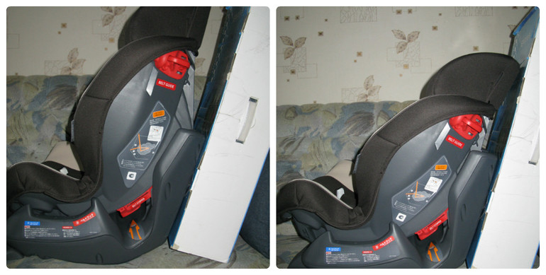 При втором варианте если я потом хочу привести кресло в вертикальное положение, оно оказывается уже не так плотно прижатым к спинке автомобиля, его можно запросто туда-сюда подвигать.