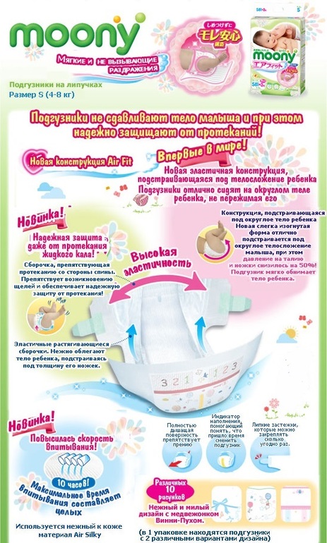 2. Муни ( moony). В упаковке 81 штука, от 4 до 8 кг!