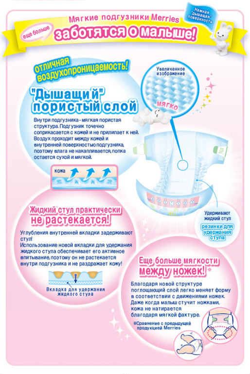 Здесь производитель обещает, что жидкий стул ПРАКТИЧЕСКИ не растекается;)))) действительно практически не растекался, а иногда очень сильно протекал и пачкал нам одежку. Еще -!