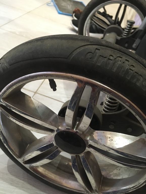 Задние вместе с шиной 30, передние 24)) коляску берите не сомневайтесь!! Мы её уже больше года катаем, а вот щас будет вторую зиму катать младшего! Так она зимой лучше танка по любой снегокаше и сугробам ехала, а главное она как будто сама едет я и не нужна ей))) не пожалеете