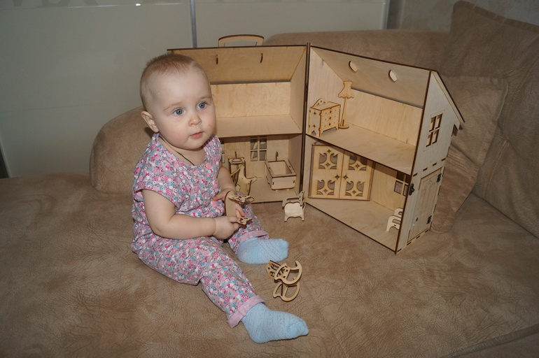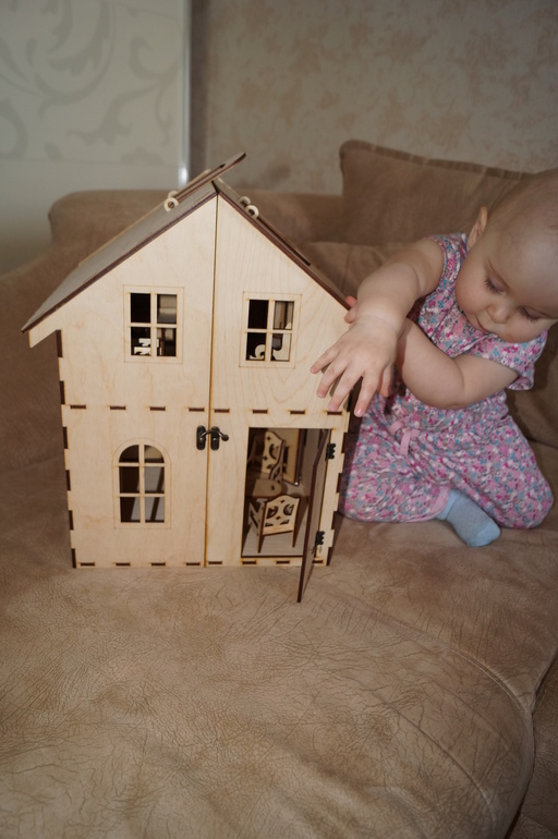 На день рождения (и он же день крестин) крестная Алисы подарила золотой крестик и 2000 рублей,сказала что-нибудь купить ребёнку.Думала-думала и решила "навырост"купить домик...и память и очень красивая игрушка!!! Вот сегодня пришёл заказ, боже мой,какая красота!!!к нему я ещё заказала мебель.Мебель,как пазл,собирался в пазы,а дом был собран.Все сделано из фанеры,прочно,аккуратно обработанно.Его можно покрасить,поклеить там обои))но,честно сказать,портить краской такую красоту не хочется! Очень надеюсь,что дочь подрастает и оценит подарок.уже подобрала к нему маленьких куколок,осталось купить