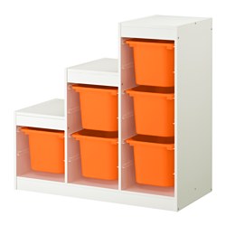 у нас такой же Труфаст, но я бы не сказала, что он сильно вместительный. все равно часть игрушек стоит сверху, увы. а если у вас трое, то вам одного такого не хватит наверное. )