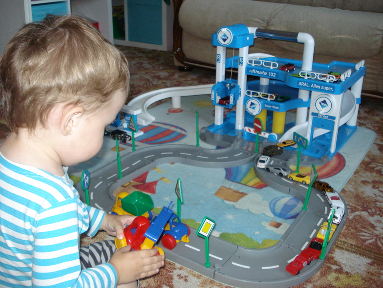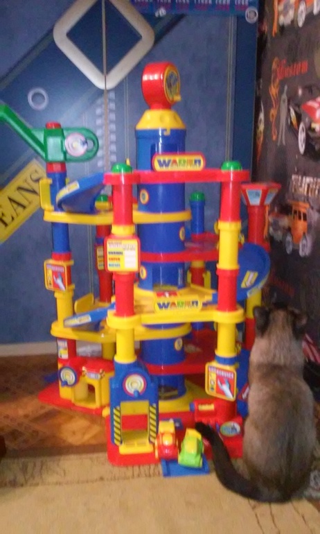 Девочки,может конечно дети мои и я заелись в игрушках,но хочу сказать,что ни одна парковка не производила впечатление у моих 2 сыновей,младшему на год решили подарить огромную 8этажную Полесье,чтобы старший его учил играть,в итоге она стоит и ей играет только кот,то чешется об нее или по этажам лазиет.Трек наверно большой будет интереснее.Вот наша груда пластмассы