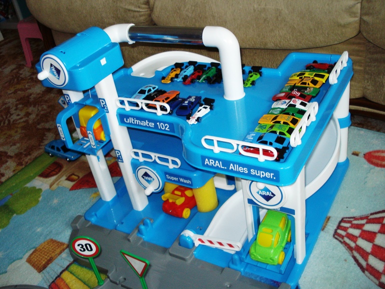 Я не помню вам ли я её стартовала у нас такая когда брала её то тоже не было отзывов,нормальная парковка мне понравилась красочная яркая машинки смоби к не классные такие.и главное не занимет много места.а то брала нордпласт громадная такая и ещё с её треков машинки вниз не сьезжали.пластик хороший без запаха.электронный шлагбаум есть звуки машинок.не скажу что супер прочная но кидали 2 раза ниче норм.лифт легко крутится вручную.правда наклейки немочень клеились и иногда выходят из пазов те опоры которые этажи держат но нам нравится,помещается на стол маммут