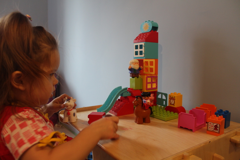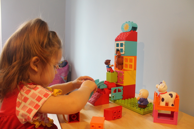 Катеньке в LEGO DUPLO нравится абсолютно все: строить, соединяя детали между собой, открывать и закрывать окошки и двери, прятать в домики человечков, кроватки и все, что только можно в них положить, играть в сюжетно-ролевые игры и т.д.