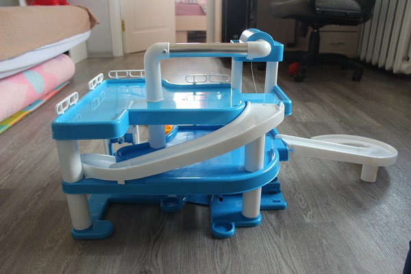 Также парковка оснащена двумя спусками. Один прикручен, второй съемный и вставляется в пазы площадки второго этажа. Вот тут незадача конечно, ибо вылетает при не аккуратном обращении.
