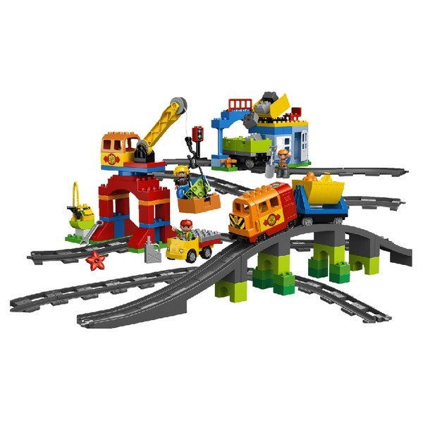 У Лего дупло нет мелких деталей. Супер дорога. Помимо поезда, который едит сам по рельсам и без, там есть еще куча всего. У нас любовь к Лего началась именно с железной дороги.