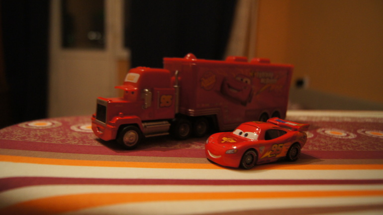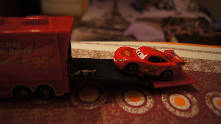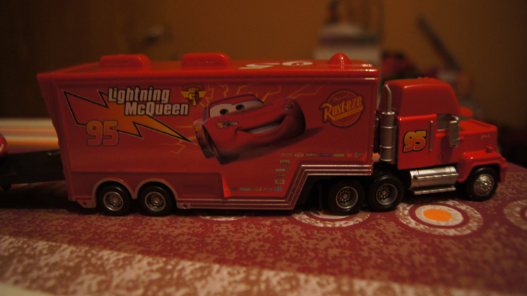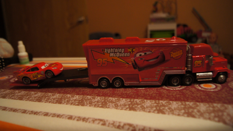 Машинка Маквин и кузов грузовика -металлические:) Т.е. они в один момент не разлетятся)