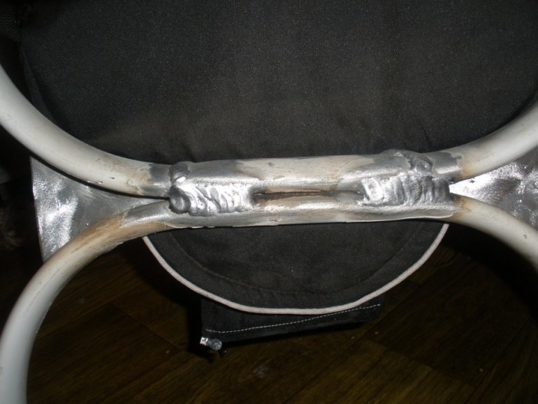 купили коляску АДАМЕКС ДЖОГГЕР в магазине ПЧЕЛКА ТОЙС в городе ПЕРВОМАЙСК, НИКОЛАЕВСКОЙ ОБЛ. УКРАИНА....(на фото видно ДВА сварочных шва.....и крепление по бокам рамы чтоб не лопнула снова...)