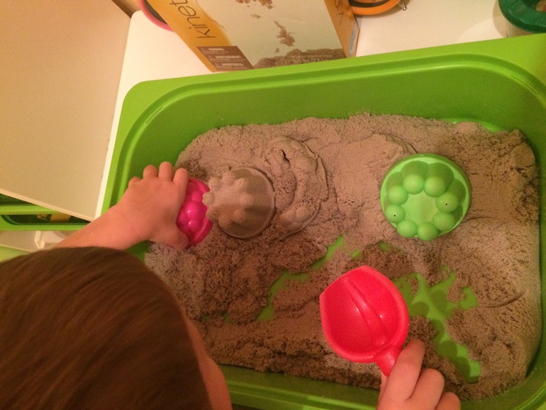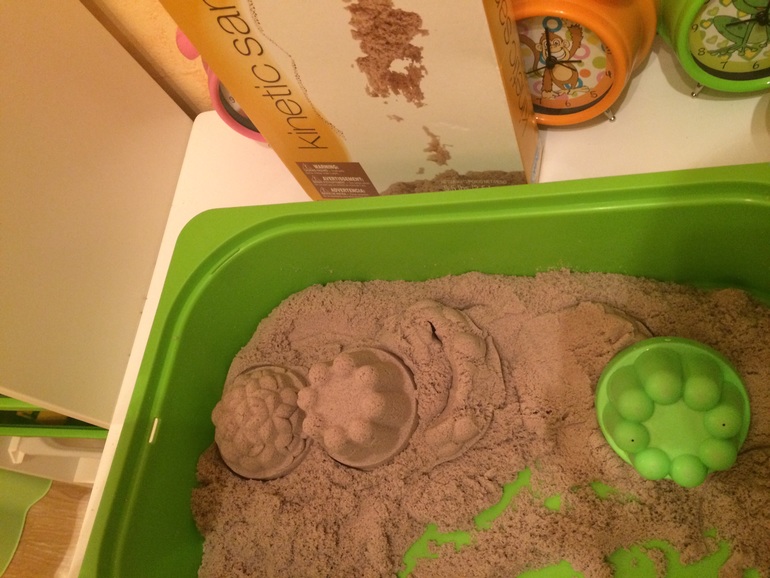 Песок классный, был у нас 2 года) Потом растерялся или замусорился, выкинула остатки) Но сыну оч нравилось) Я как то кайфа прям не словила от тактильных ощущений)))