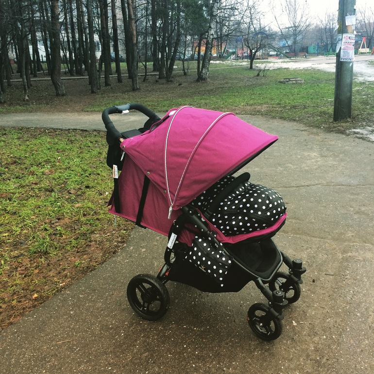 Такая колясочка красотка.Цвет потрясающий.С конвертом в горох просто феерично смотрится.Аж захотелось тоже такую купить,правда муж убьет,доче 4 месяца,уже 5 колясок было.