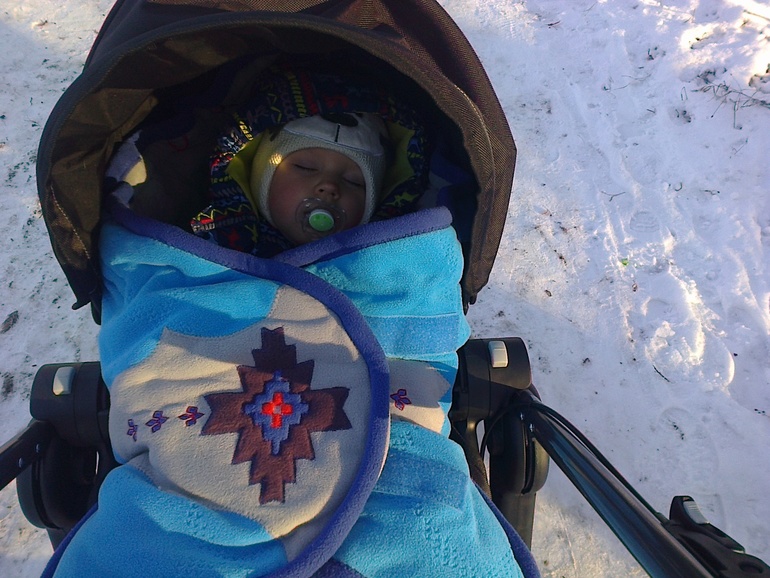 Насчет тепла. Первую дочку (зимой) одевали так: бодик, колготки (или слип), кофта, штаны, потом демисезонный комбез-конверт, далее лоджер, а поверх и вниз в несколько слоев обычный шерстяной плед. Всегда было тепло. Это мы в люльке гуляли.