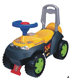 Сейчас, так как сын стал рулить какими только можно круглыми предметами, решили купить машинку (нам 1,6 сейчас, а у нескольких друзей такая же с 1 года), сыну очень понравилась, катается каждый день, а мне нравится что еще в ней всего 3 мелодии и клаксон, мелодии не раздражают, он под них танцевать любит.