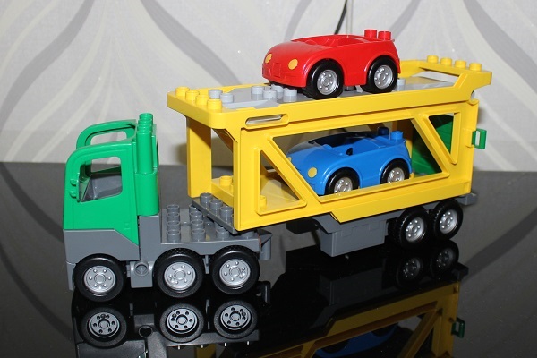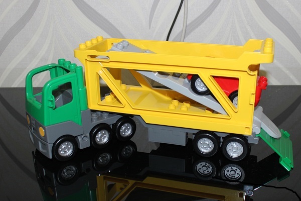 Долго искала автовоз, но все что попадалось или не нравилось, или не было в продаже. Этой игрушки, кстати, тоже не было, наткнулась на нее совершенно случайно на 7брикс и удивилась. Как я поняла их уже не выпускают, так что были мысли про брак или какого-то другой подвох. Но все обошлось, игрушка супер, а с учетом, что это Лего и все со всем совместимо я довольна, как слон.