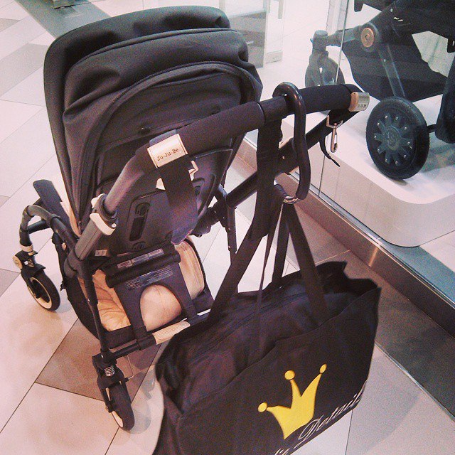 Мне, в подарок к аксессуарам для коляски, вложили карабин на липучке. Очень удобная штука. Тоже навешиваем всякую всячину ☺