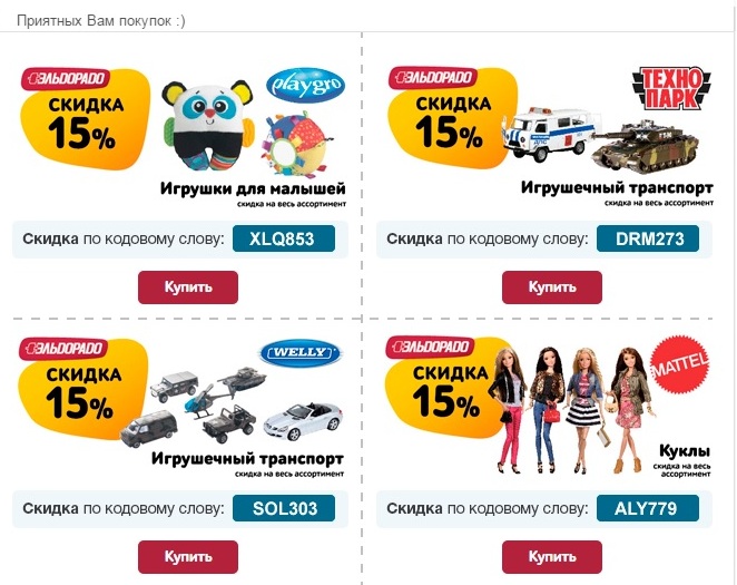 Добрый вечер! Присоединюсь к Вашему посту, дабы не плодить))) Поделитесь со мной тоже промокодом в Эльдорадо, пожалуйста! Нужно на игрушки. Спасибо, кто отзовется!😘