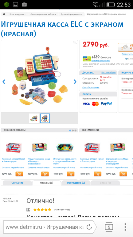 У нас очень похожая на эту. И тоже заказывали бабушке на 2 года , т.к. в наличии имеется старший брат и мальчуковское уже все есть. Играл сразу каждый день минут по 10. Мог забыть на недельку. Потом вспомнить. Она стоит постоянно. С приобретением всякой еды игры стали активнее и длительнее. Но это уже было ближе к 3 годам