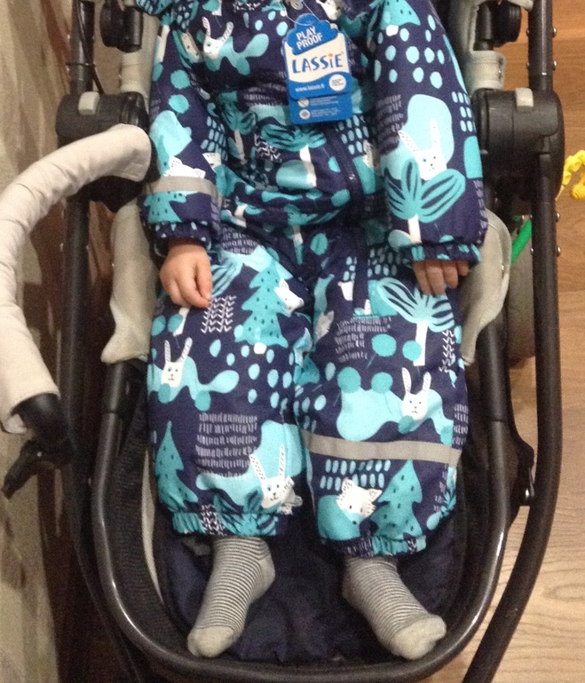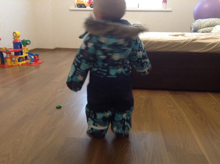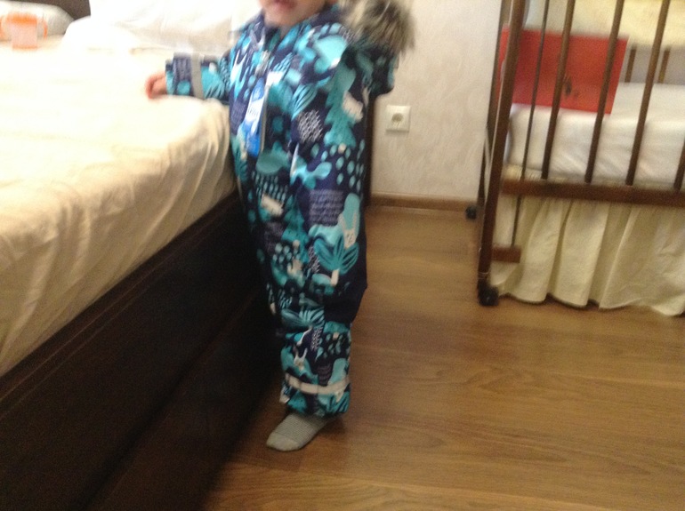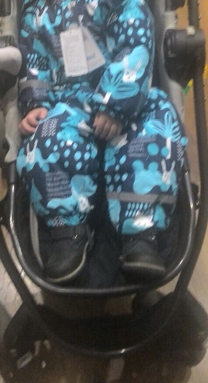 Комбез ребенку велик)Где стоя фото,кисть перекрывает рукав)))Вам его с головой хватит до конца сезона))А в коляске всегда штанины задираются)У вас ещё даже и не задираются-то,у некоторых когда реально мал комбез,в коляске штанины на коленках))))))))))
