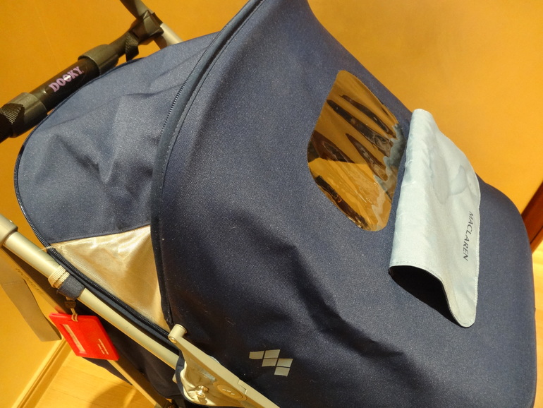 окошко на магнитиках, карман на липучке и много туда не сложишь, иначе это будет на голове у спящего ребенка. Перекладина дуки нам не помогла) сползает, а так идея неплохая) думала смогу управлять одной рукой..![]()