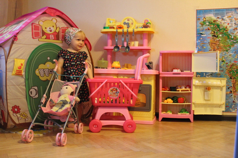 Из того что мы старшей дарили на годик стало хитом: кухня, набор продуктов и палатка домик.