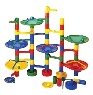 ну конечно поначалу мама будет собирать, а ребенок только кидать шарики ))) У нас этот конструктор достался от старших детей и дочка любила смотреть как шарики скатываются месяцев с 6ти