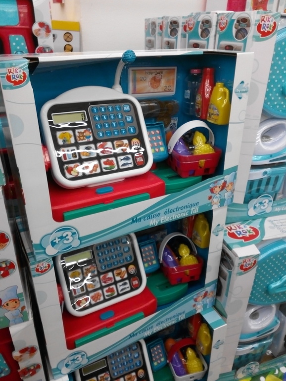 На рынке атлант есть 2 этажный магазин игрушек, там очень много разных касс, продуктов и вообще развивающих игрушек, и цены не кусаются