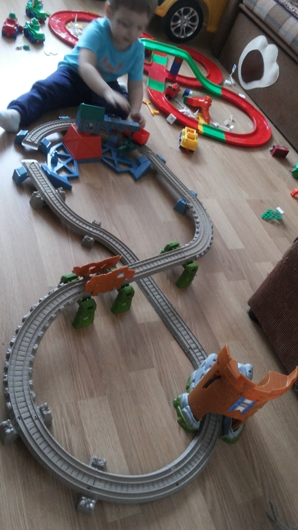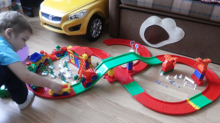 резюмируя, сам набор по качеству исполнения не заслужил нареканий, все крепко и продумано, каждая деталь на своем месте, можно дополнять другими наборами. считаю что подобные наборы пока сложны для сына, мне кажется он будет идеальным годам к четырем. В нашем возрасте очень занимателен набор с водонапорной башней, для самостоятельной игры.