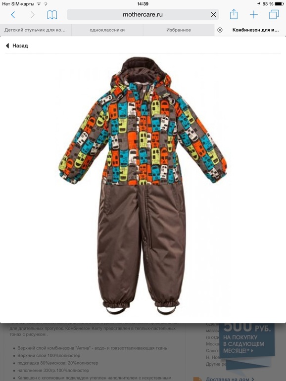 Я купила комбез на полтора годика(на вырост) фирма Kerry пока скидки. В магазине mothercare. Стоил почти 8000,а купила за 4700