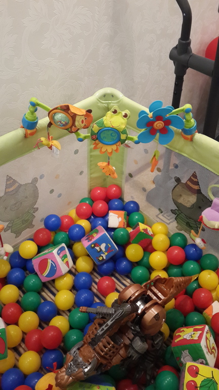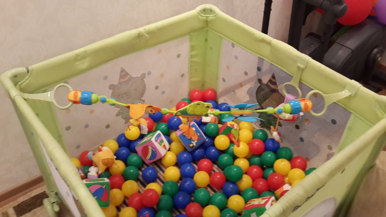 )))) я название не вспомнила. В инете первое, что нашла были джунгли. Шариков 200 шт, их на этот объем мало, они под ребенком расползаются. Лазить в манеже практически не мешают