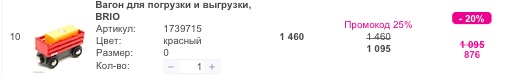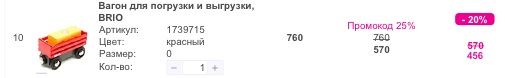 Интернет-магазины России и стран СНГНа этот раз с ценой. Оформляю заказ на игрушки brio, смотрю - в корзине что-то цена стала явно больше. Проверяю - вдруг где-то две штуки вместо одной - нет, все верно. Не понимаю и начинаю сверять уже цены. И что я вижу: вагончик, который буквально 10-15 мин назад стоил 760 стал стоить 1460! Вот так вот... Будьте внимательны! То ли сбой, то ои "переоценка". Раньше этим только Озон славился, когда цены туда-сюда плавали, но в WB я такое впервые вижу, чтобы так резко днем и в 2 раза! Обидно :(