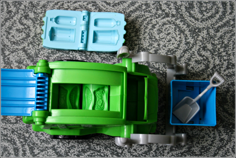С пластилином Даник играет с ней только под моим присмотром, а в свободной форме машина вполне согласна "кушать" бумажку и этого мусора моему юному мусорщику вполне хватает. К остальным деталям претензий нет! И как вывод, денег своих она не стоит, тем более сейчас.
