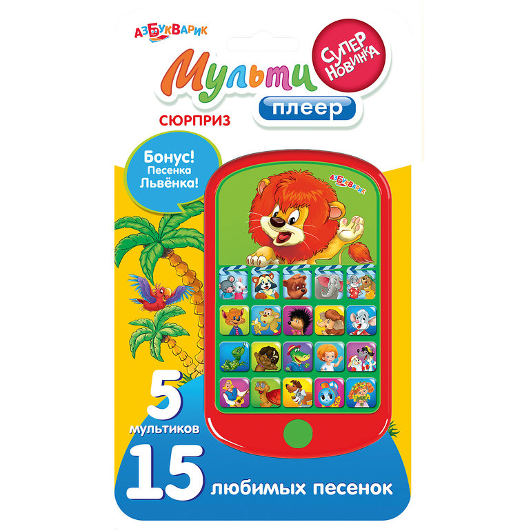 И планшет с песенками и мини-сказками. Честно говоря, была крайне удивлена, что подобная хрень, по моему мнению, может вызвать настоящий фурор у ребенка. С помощью этого девайса сын откровенно копирует наше с папой поведение с нашими взрослыми смартфонами, ну просто смотри и ужасайся))) А по делу: штука классная, в ней 5 сказок и 15 песенок из разных мультфильмов Союзмультфильма. Некоторые менее похожи на оригинал, некоторые более. Но для ребенка это не принципиально. Игрушка выручает в поездках на машине и как отвлекающий маневр (если не давать в свободный доступ). В поездке в Ярославль на праздниках проявила себя с самой лучшей стороны. Очень советую к покупке от 1,5 лет, на вырост.